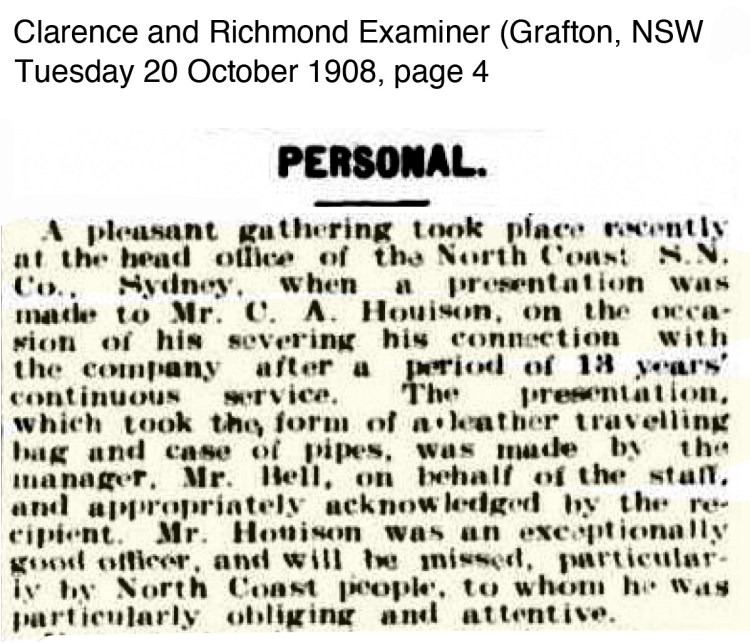 There appears to be no official farewells or events for the Houison’s in Grafton that have been recorded in the newspapers.