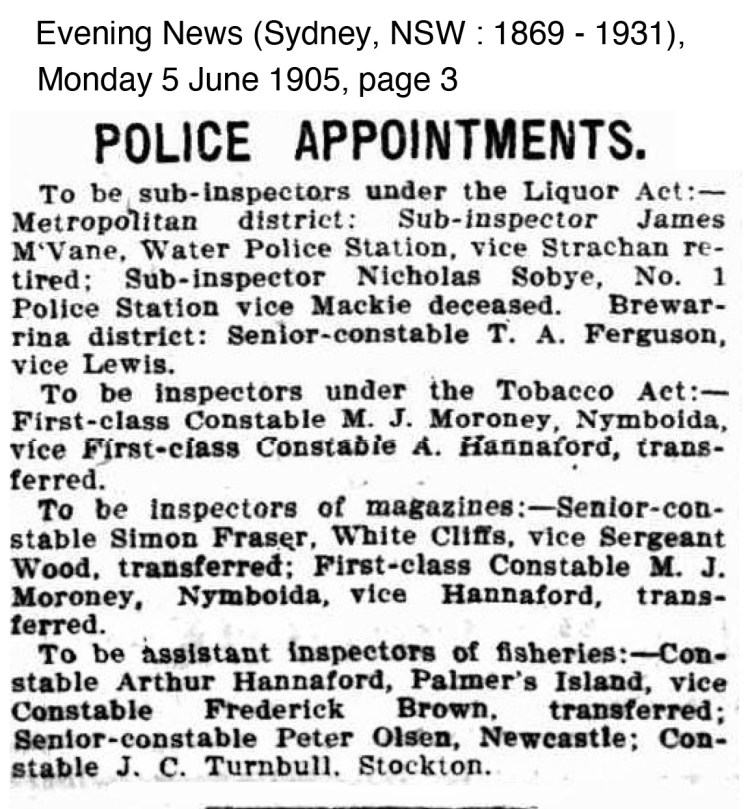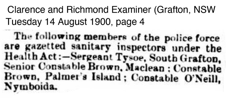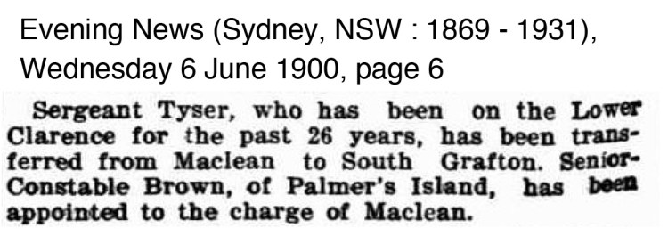 In 1900 Senior Constable Frederick Brown was transferred to Maclean Police Station.