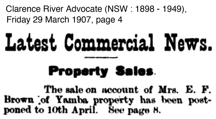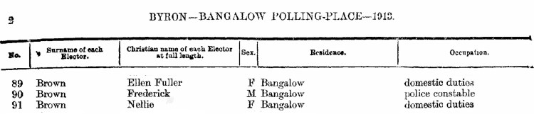 Ellen and Fred remained in Bangalow with Fred Brown continuing to serve as a Sergeant at Bangalow Police Station. until after 1917