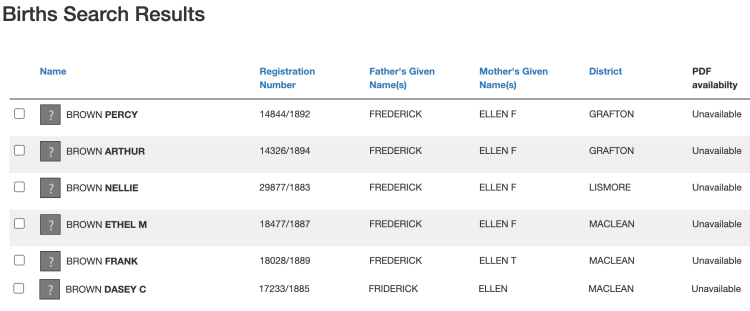 From 1883 until 1892 Ellen & Fred Brown had six children registered in NSW Births deaths and Marriages.