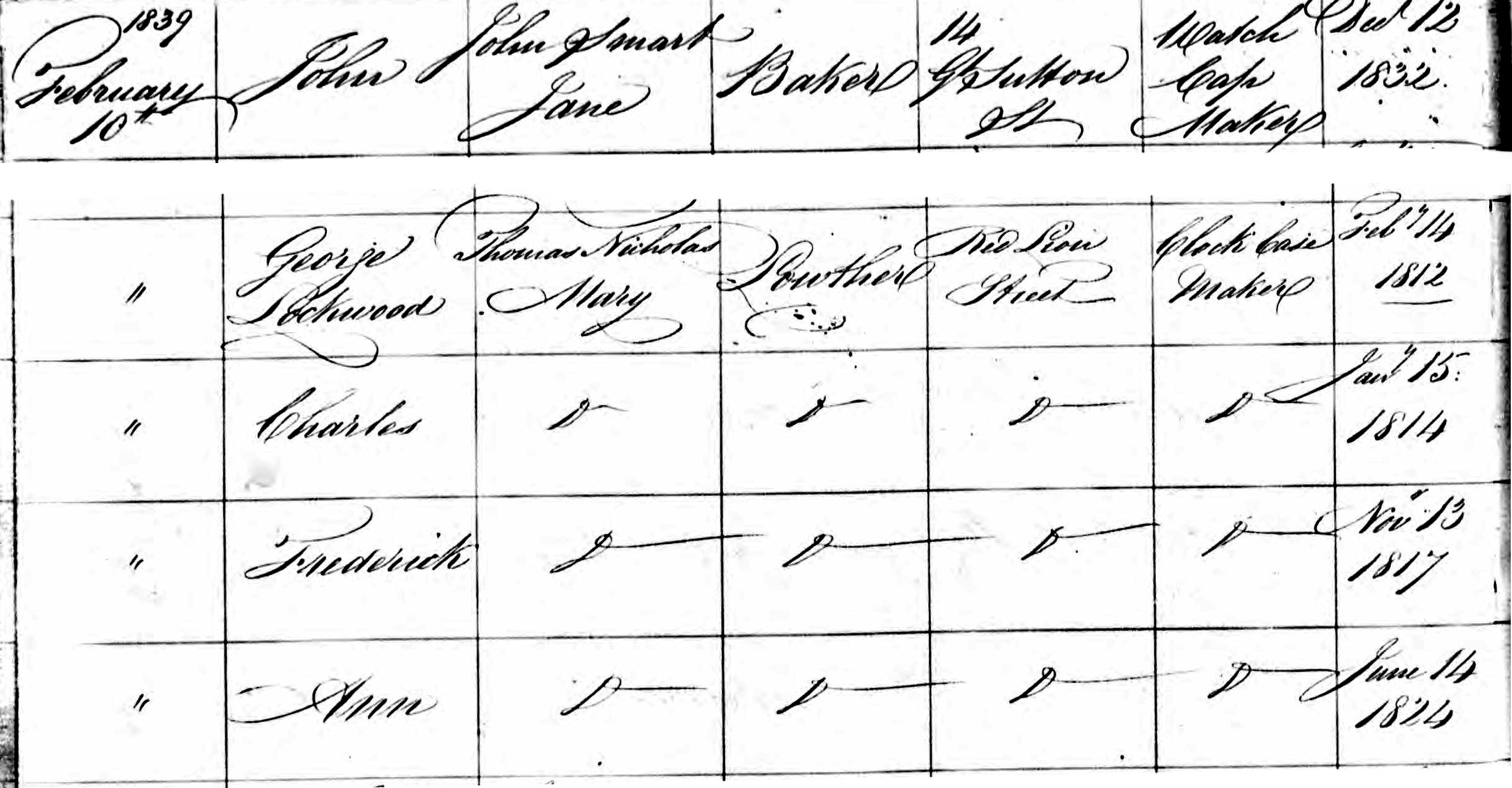 - Frederick b: 13 Nov 1817 – Unmarried – Hosier/Suit Fitter/Tailor/Draper d: 29 Sep 1882 Fulham