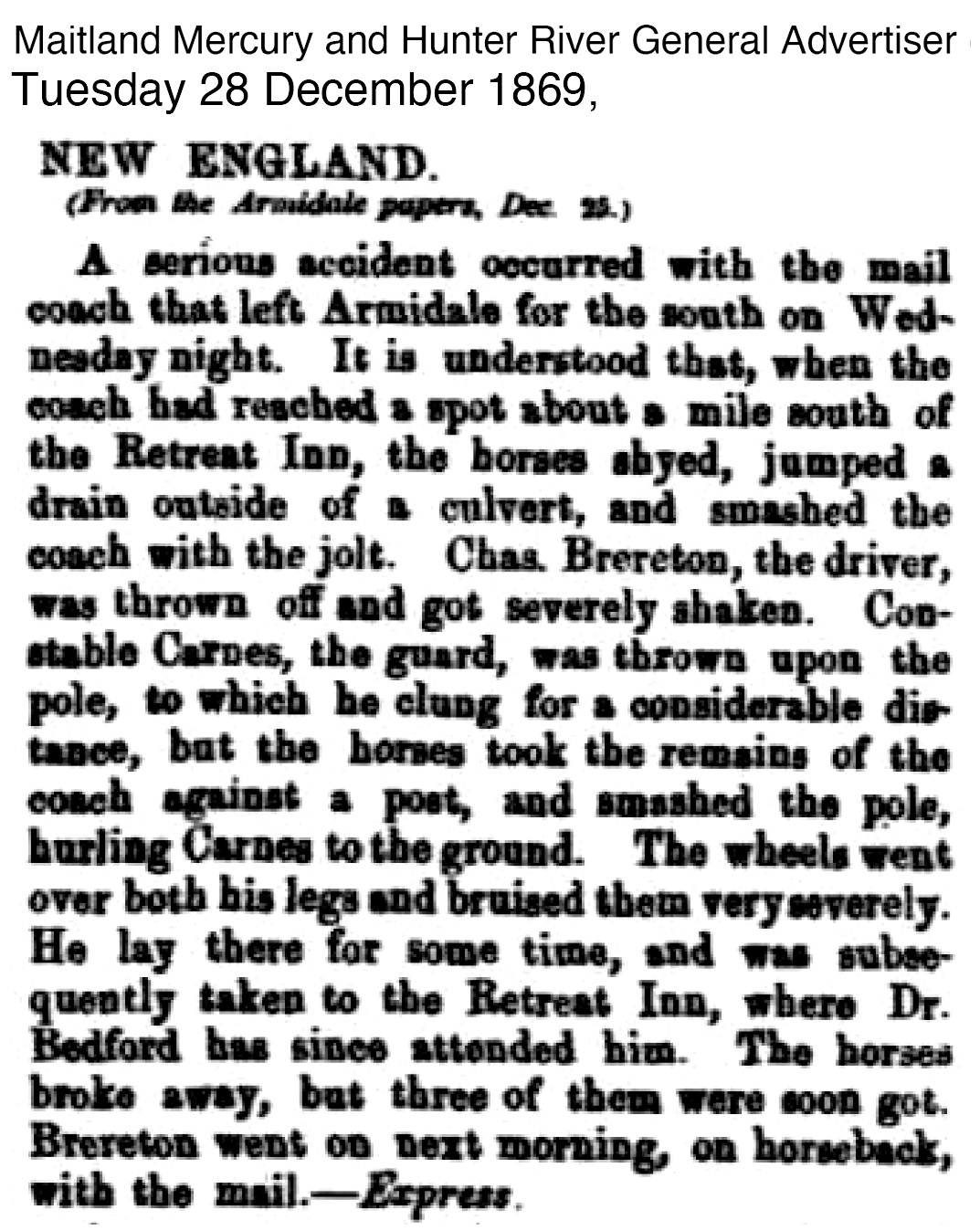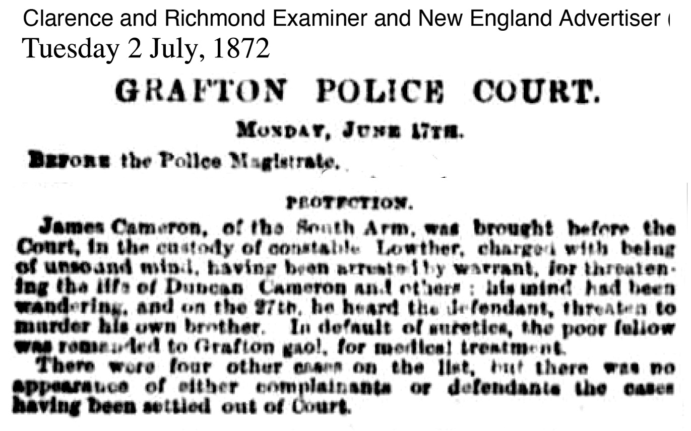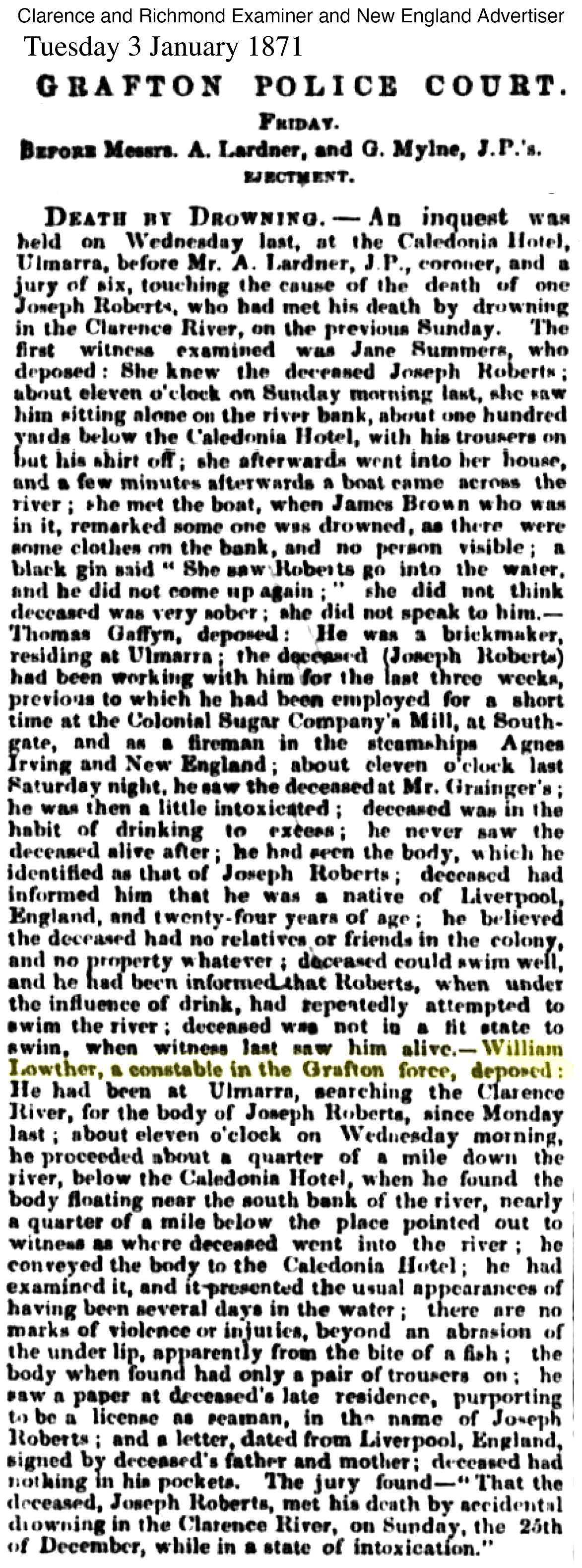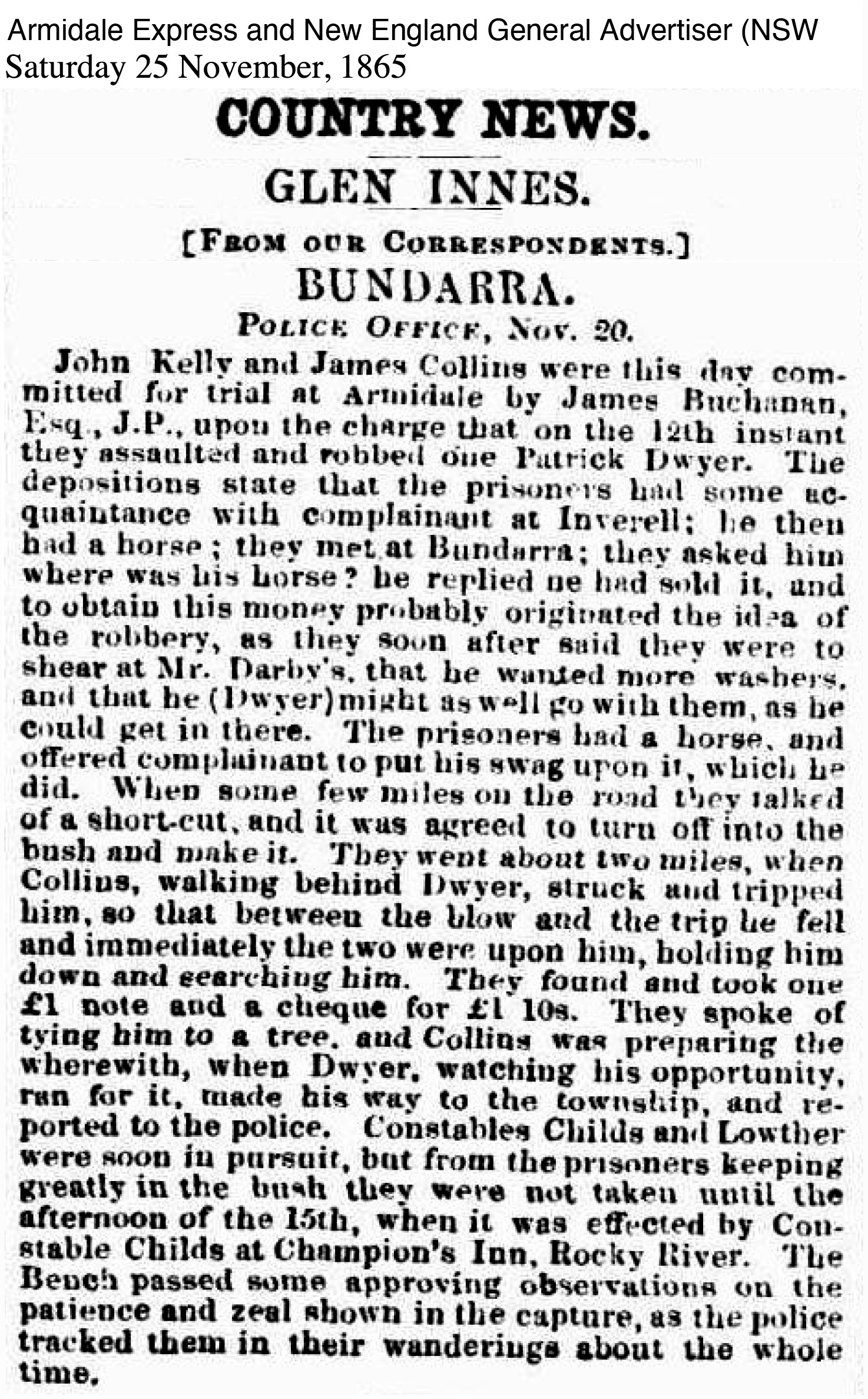 There are several immigrants listed as ‘Lowther’ but no given name, he could have been one of these. The first record that can be found for William Lowther in Australia is when he joined the Police force in 1862, he would have been 47 years of age. He was appointed to work in Bundarra, Glen Innes, and Grafton and several newspaper articles can be found about his work as a Police Constable, some of which are below.