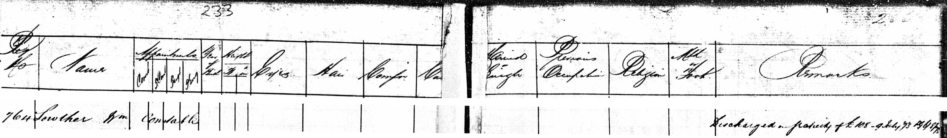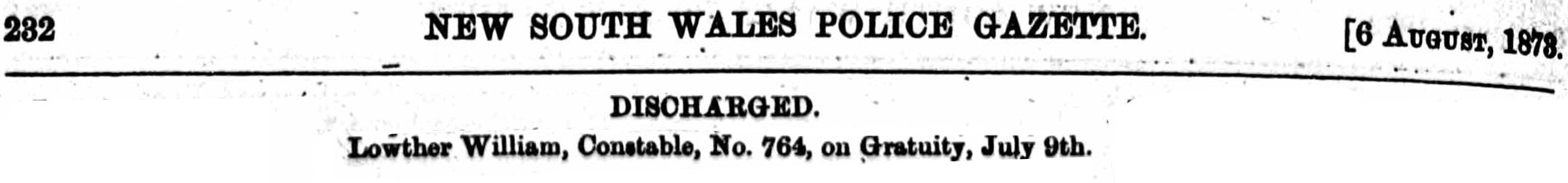 In 1873 Constable Lowther was discharged with a gratuity, there doesn’t appear to be any records of why this happened but he would have by this stage been 58 years of age.