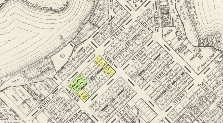 In 1861 the area was surveyed and in 1872 land grants for the main town area were put up for sale by the government, and so the beginnings of Yamba as a town and ‘seaside resort’ began. The National Library of Australia has a map from 1968, it shows the original town allotments for both Francis Freeburn and the original white purchaser of the land where the cottage on 3 River Street still stands in 2023. He was W. Lowther on the map and was in fact William Lowther a police constable in Grafton at the time and later a gentleman owning some significant land in Sydney.