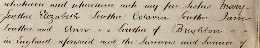 It has been difficult to trace William Lowther, he was a settler from England but he was not married nor did he have any children registered. There is, however, a clue contained in his Will amongst his Probate papers held in the NSW State Archives. He had five sisters; Mary, Elizabeth, Octavia, Jane and Ann of ‘Brighton in England’.1