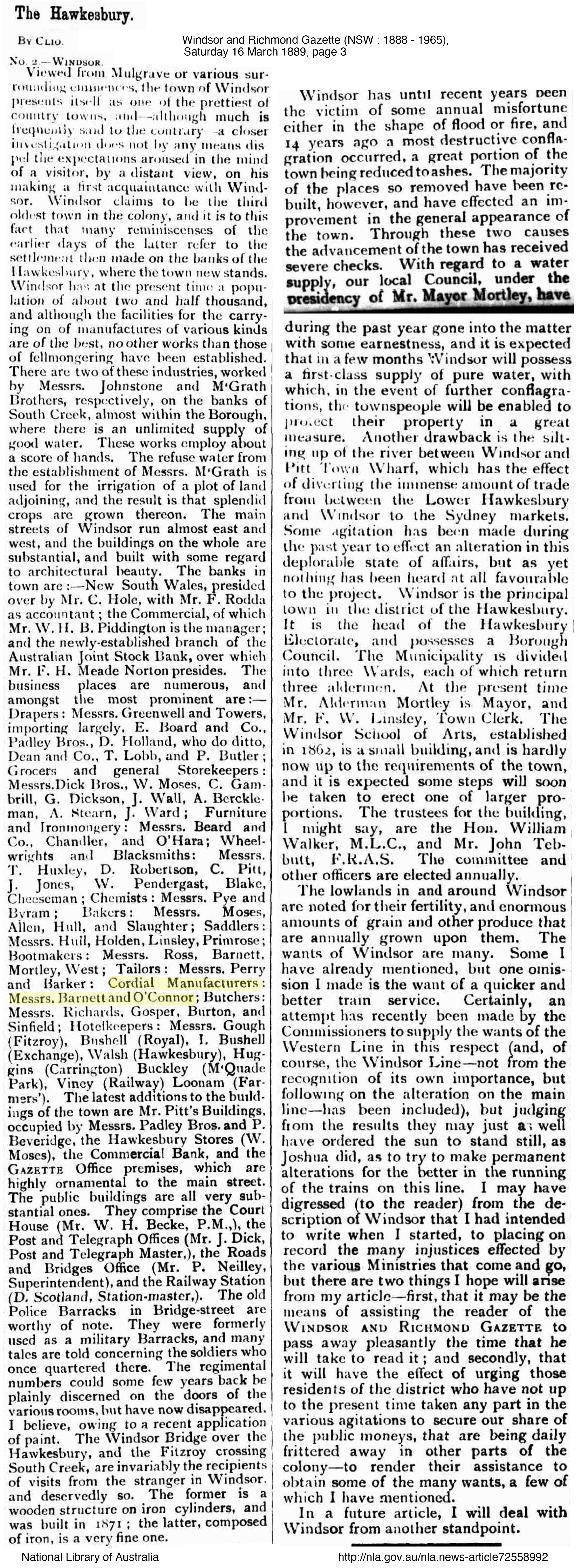 - Clarence River Advocate (NSW : 1898 – 1949), Tuesday 30 January 1900, page 2
