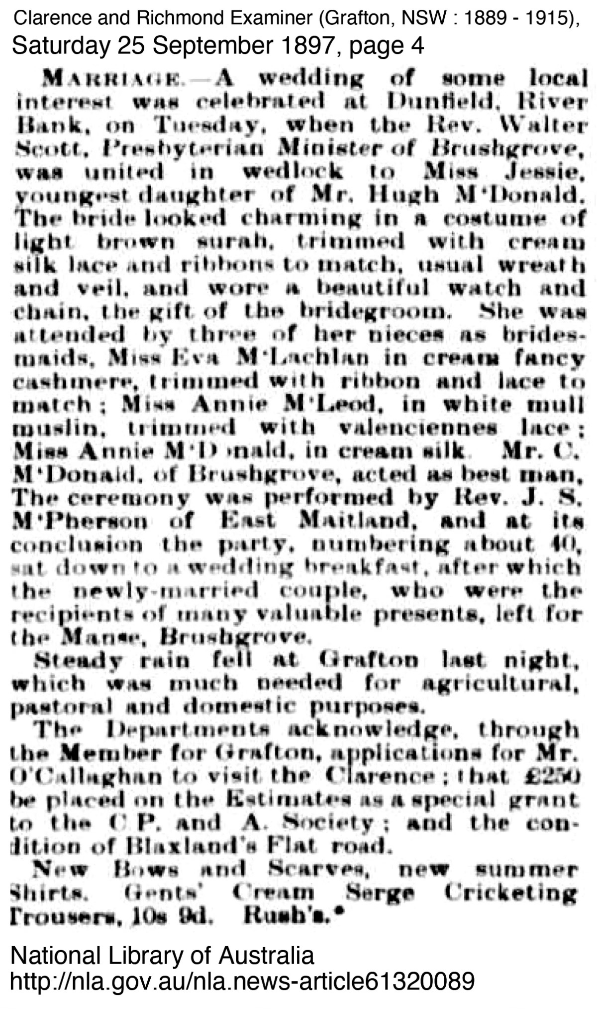 - Clarence and Richmond Examiner (Grafton, NSW : 1889 – 1915), Saturday 1 June 1895, page 5