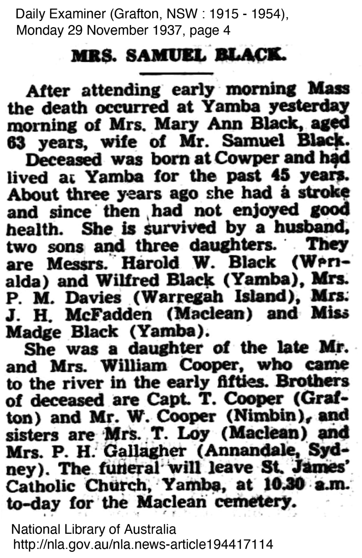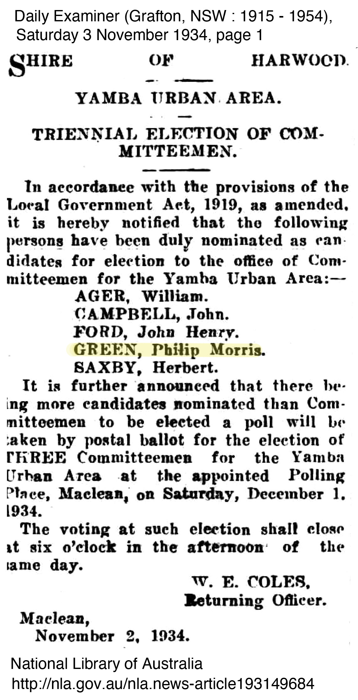 The Australian Federal Election was held in October 1937 giving a time frame for George and Marie’s return to Yamba.