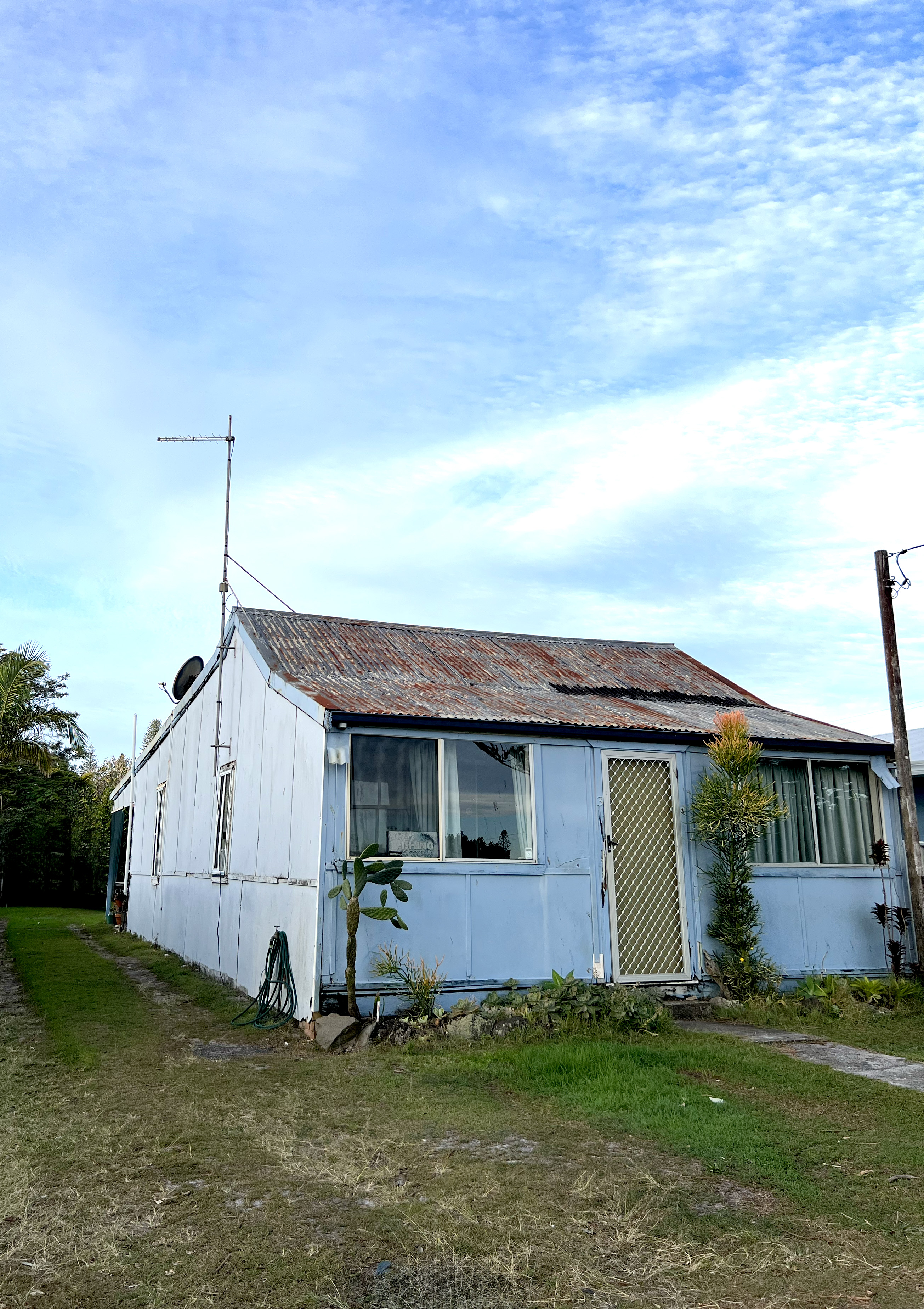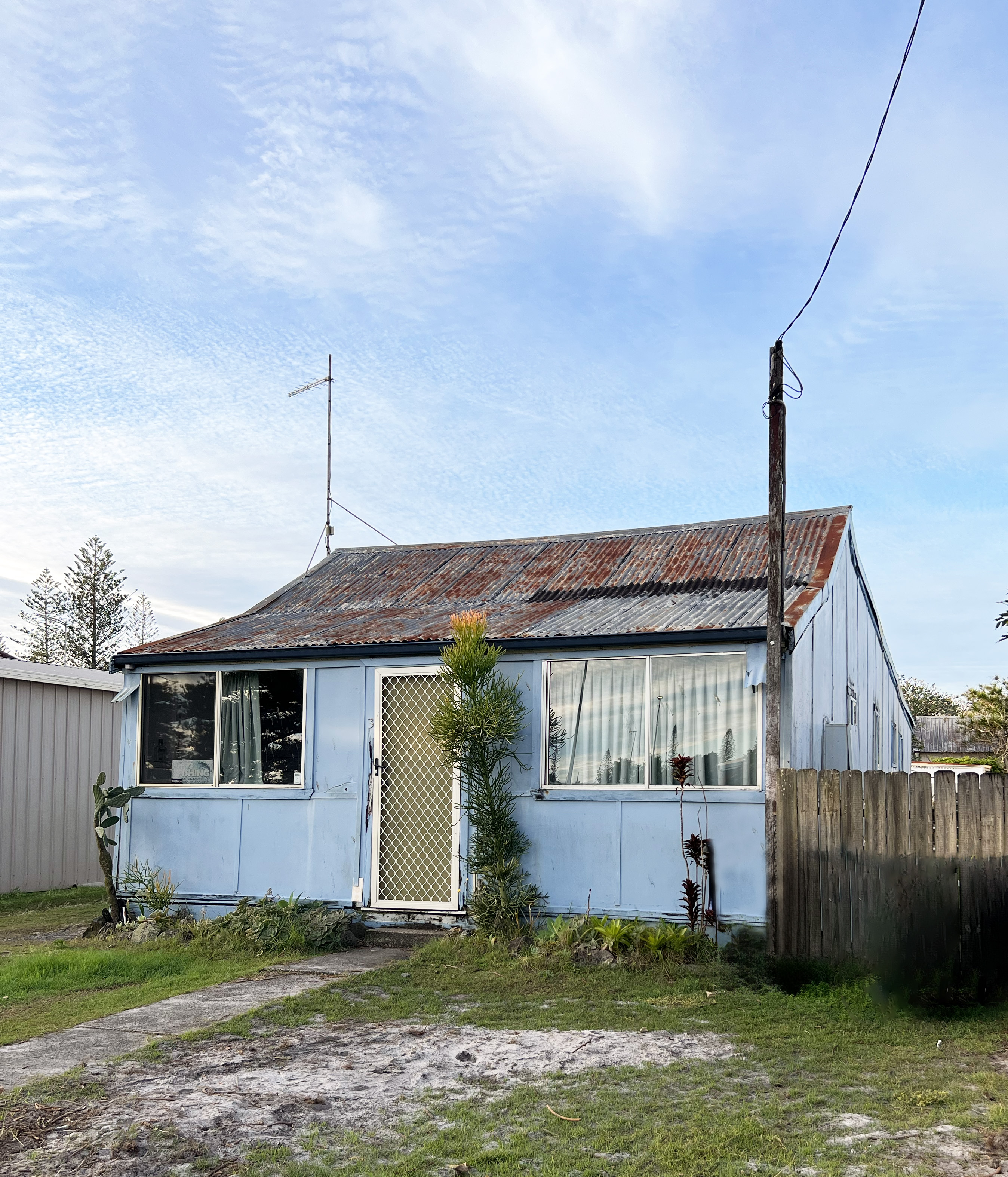From this time forward the property was rented, originally well kept but as it progressed through owners since that time, the upkeep has gradually declined. Over the years family have taken photos of ‘Grandma’s place’ documenting the decline and neglect. Gone are the front picket fence and gate, the original side small neighbour friendly paling fences now replaced by colourbond fencing. It is now known as the ‘little blue house’ after it was painted a bold blue.
